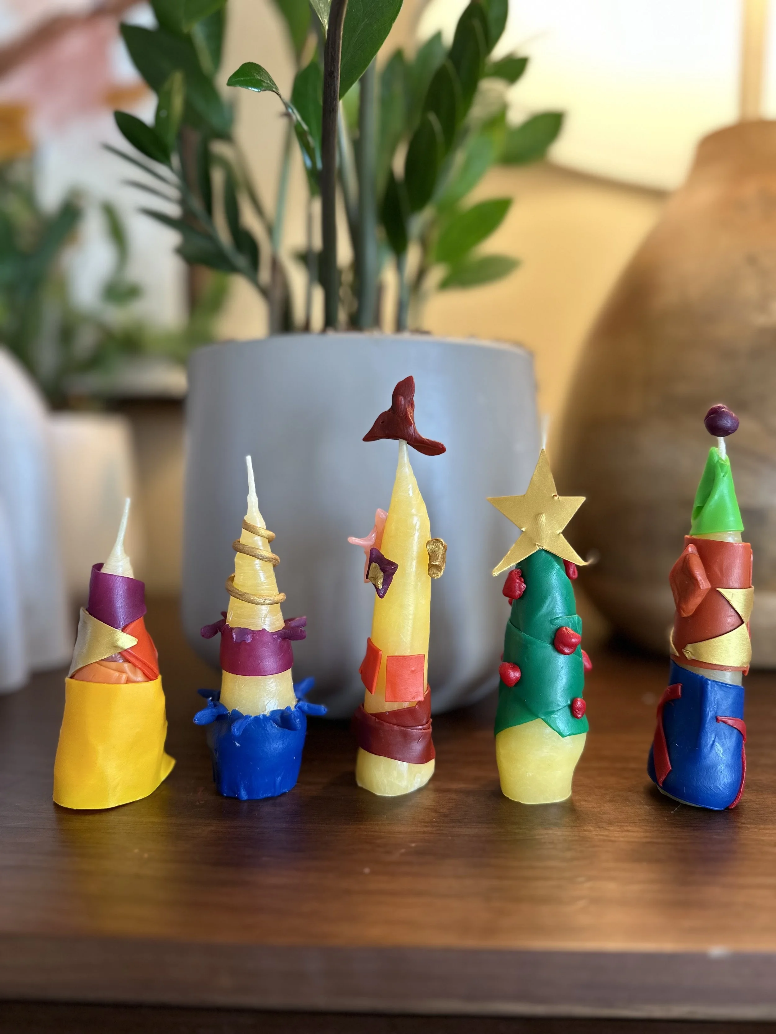 Christmas is approaching, and I wanted to start a new Advent tradition with my family. I didn’t know much about making or dipping candles, but a quick search and some shopping for the materials was all it took. This is our first time making candles, and the process was fun. It’s pretty cool to see the candle grow bigger with each dip. We use the Stockmar decorating wax sheets, and that is the part everybody enjoyed the most. I think the designs are adorable. These candles were for our Advent tradition, but I think they are too petty to be burned; we will use them as decoration.
